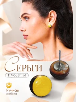 Серьги пуссеты 10 мм круглые лимонные