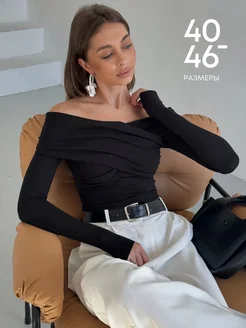 Лонгслив с открытыми плечами вечерний с драпировкой