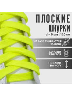 Шнурки плоские неоновые жёлтые 120 см 9 мм, 7 шт
