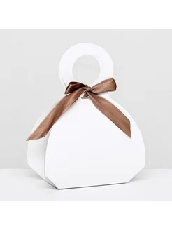 Складная коробка с бантом и ручкой, белая, 18х12х8 см, 5 шт