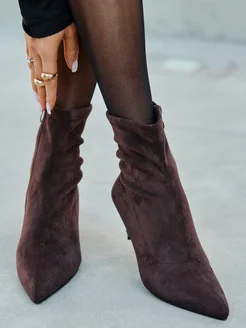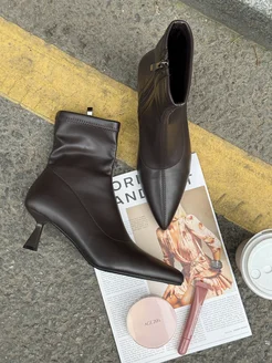 Ботильоны демисезонные на каблуке с острым носом коричневые