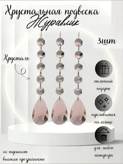 Хрустальная мини цепочка с журавликом розовый 3шт