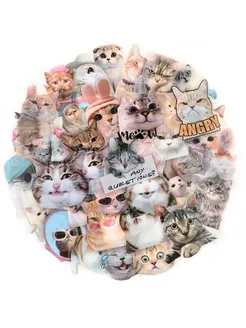 Наклейки котики стикеры для скрапбукинга 50 штук