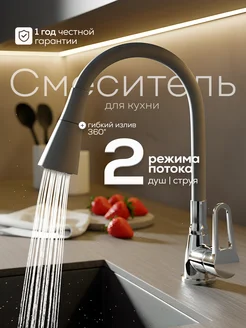 Смеситель для кухни с гибким изливом и кран серый