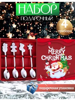 Подарочный набор столовых предметов новогодний 4 прибора
