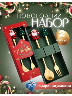 Подарочный набор столовых предметов новогодний 2 прибора