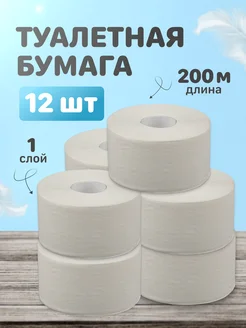 Туалетная бумага 1 слой, 12 рулонов по 200 метров