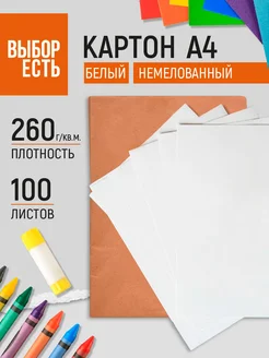 Картон белый А4, 100 листов, немелованный, односторонний