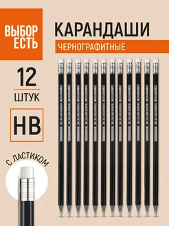 Карандаши простые чернографитные НВ набор для школы 12 штук