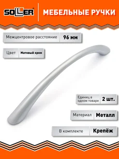 Комплект ручек мебельных 204-96 матовый хром (2шт)