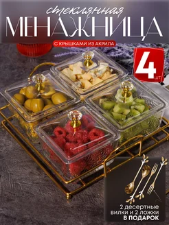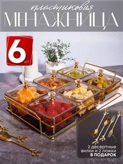 Менажница пластиковая с крышкой для орехов и конфет 6 секций
