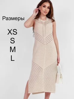 платье весенне-летнее вязаное нарядное пляжное ажурное