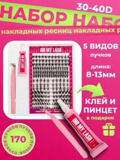 Набор черных накладных ресниц c клеем, пучки Twins 30d, 40d