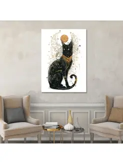 Картина Черная кошка золотые египетские узоры