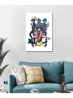 Картина Gorillaz группа белый фон 40х60