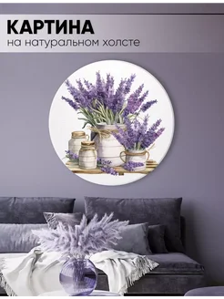 Круглая картина Прованс стиль винтаж, лаванда цветы 4 70х70