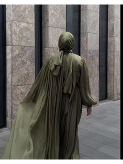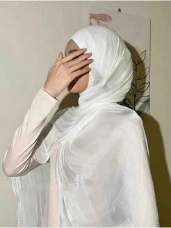 Трендовый шарф органза голубой хиджаб с пришитой боне