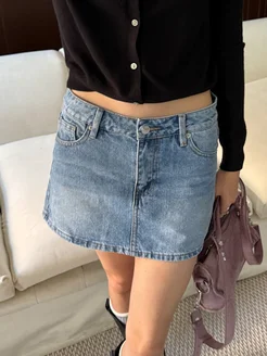Юбка шорты джинсовая мини на низкой посадке
