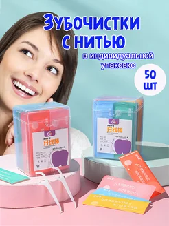 Зубная нить с зубочисткой в индивидуальной упаковке 50 штук