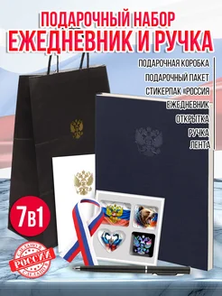 Ежедневник с гербом недат. А5, пакет ручка и открытка