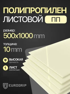 Полипропилен листовой 10 мм, натуральный, 500х1000 мм, 1 шт