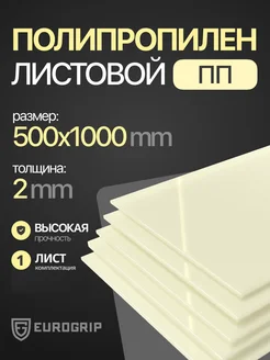 Полипропилен листовой 2 мм, натуральный, 500х1000 мм, 1 шт