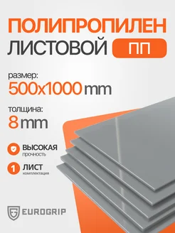 Полипропилен листовой 8 мм, 500x1000 серый 1 шт