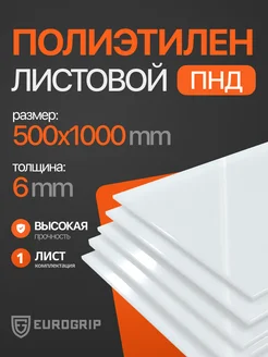 Пластиковый лист ПНД 6 мм, 500x1000 белый, 1 шт
