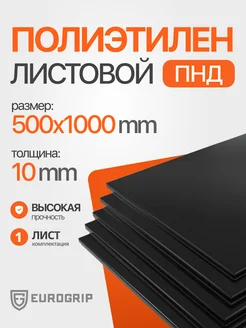 Пластиковый лист ПНД 10 мм, 500x1000 черный, 1 шт