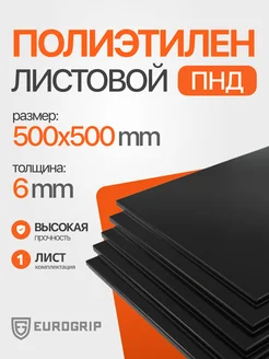 Пластиковый лист ПНД 6 мм, 500x500 черный, 1 шт