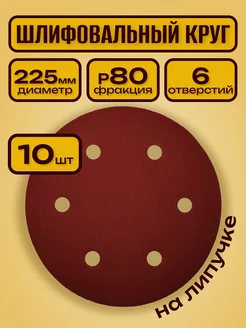 Шлифовальный круг 225мм на липучке Р80 6 отверстий