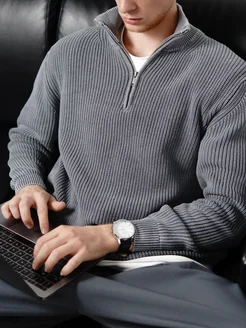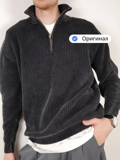 Вязаный свитер полузамок на молнии оверсайз теплый