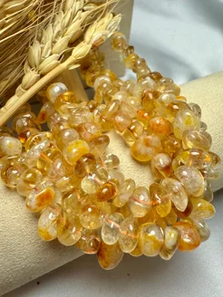Бусины цитрин галтовка 7 - 10 мм, нить 40 см