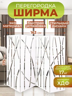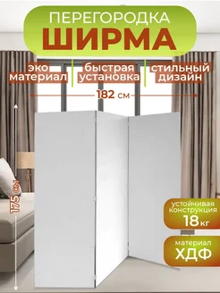 Ширма перегородка для зонирования комнаты белая 182х175 см