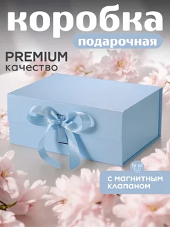 Подарочная коробка на магните с лентой голубая
