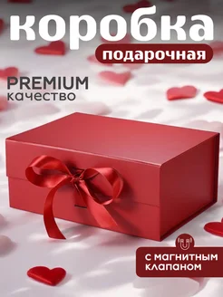 Подарочная коробка на магните с лентой красная