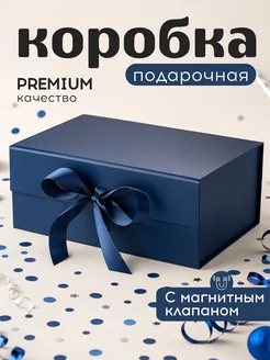 Подарочная коробка на магните с лентой тёмно-синяя