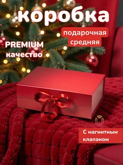 Подарочная коробка на магните с лентой красная, средняя