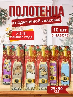 Новогоднее полотенце в подарочной упаковке наборе 10 шт