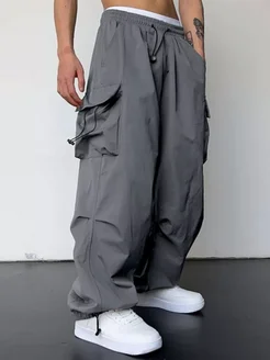 Брюки спортивные легкие широкие на резинке карго оверсайз