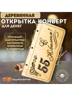 Деревянный конверт "С Юбилеем!" (55 лет)