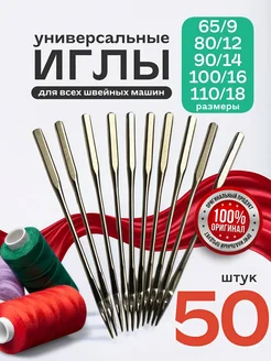 Набор универсальные иглы для швейных машин, оверлока 50 штук
