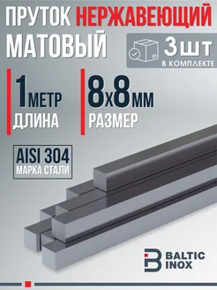 Пруток квадрат нержавеющий матовый 8х8 мм, длина 1 м - 3шт