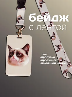 Чехол для пропуска вертикальный на ленте grumpy cat