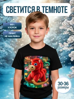 Футболка светящаяся хлопковая новогодняя детская