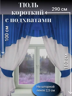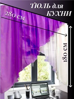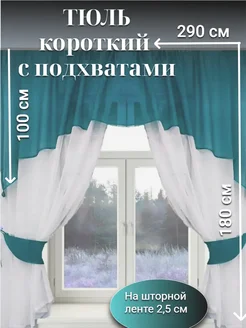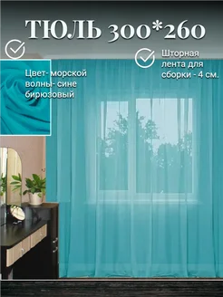 Тюль вуаль бирюзовый для кухни и спальни 300х260см