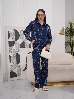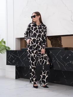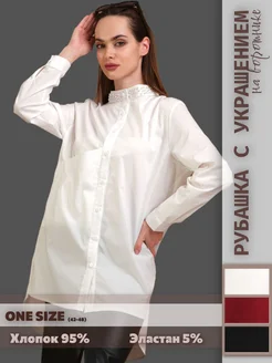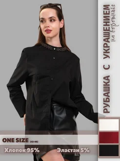 Нарядная плотная осенняя рубашка с украшением на горловине