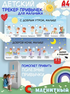 Трекер привычек для детей магнитный. Распорядок дня мальчика