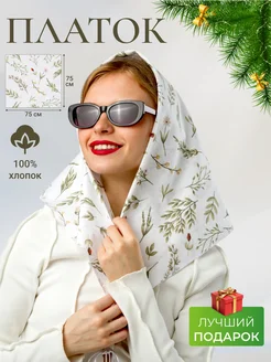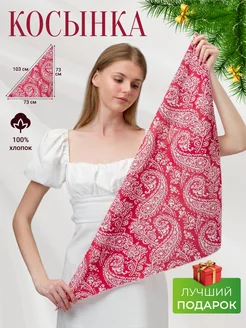 Косынка на голову и шею хлопок 73х73 см. Красная