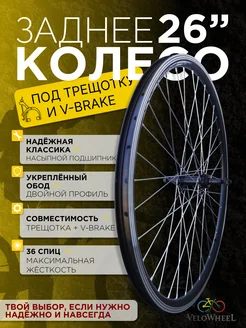 Колесо заднее для велосипеда диаметром 26 дюймов (V-Brake)